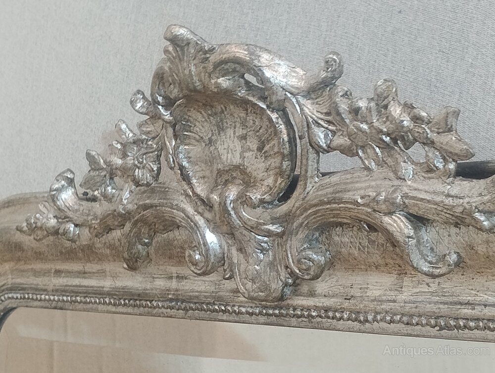 Large Antique French Silver Gilt Wall Mirror c1880