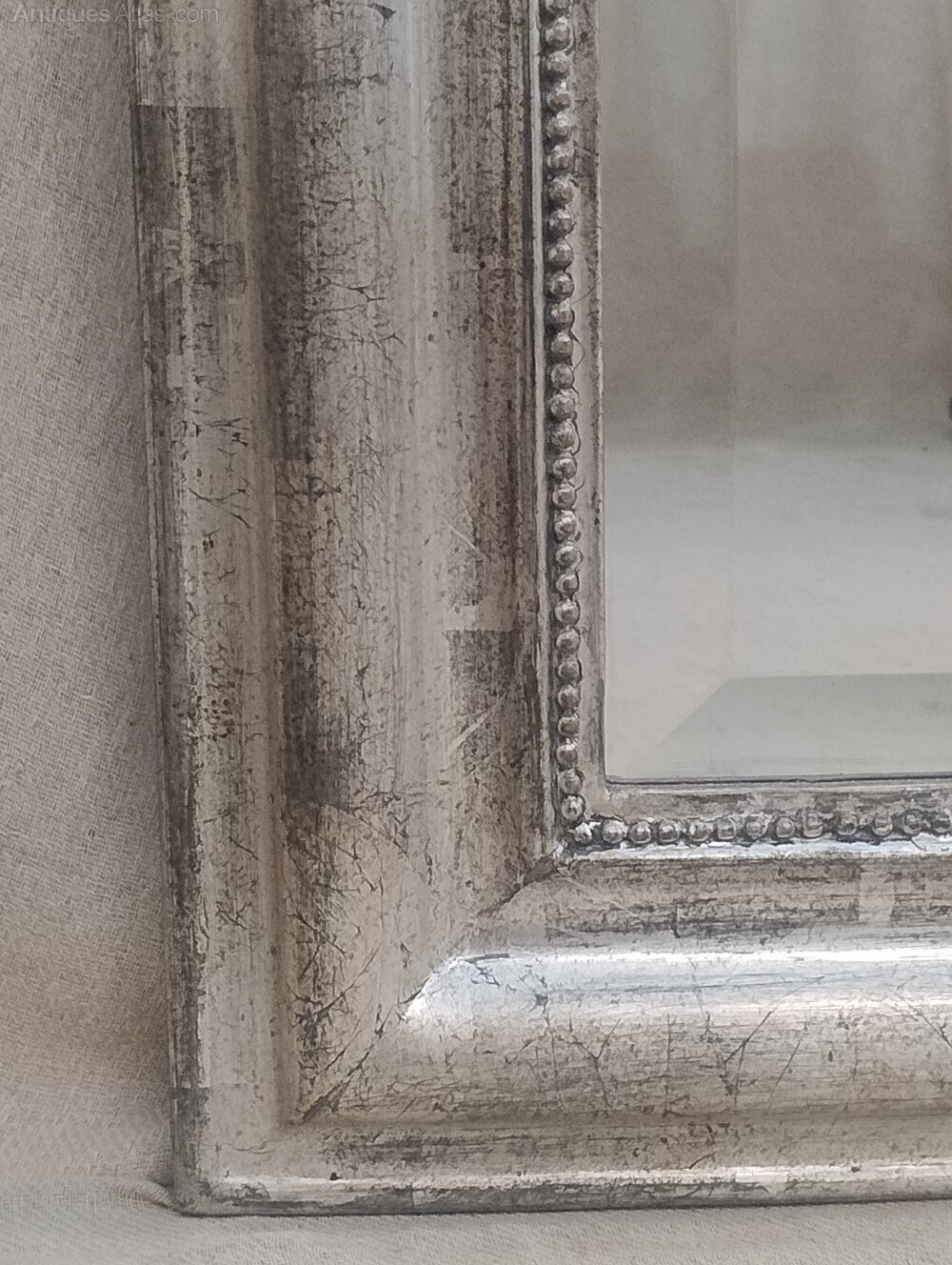 Stunning antique French silver gilt mirror dating from 1880.Original beveled mirror plate and backing boards.