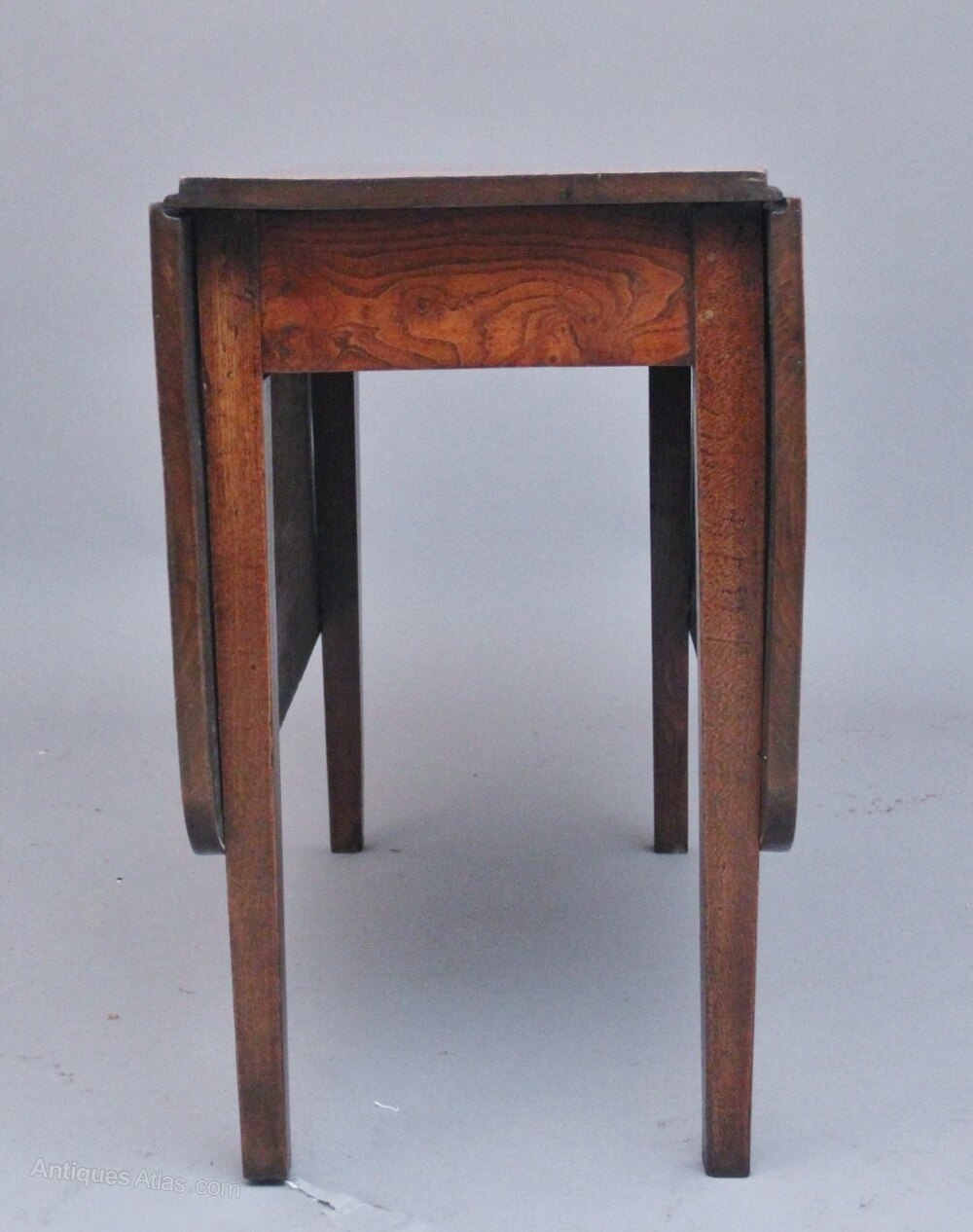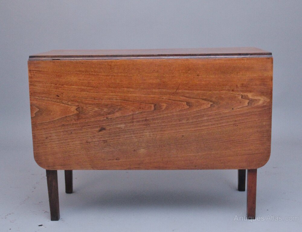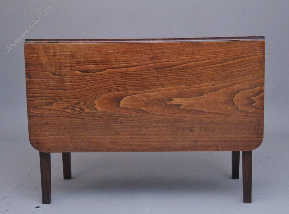 Early 19th Century elm drop leaf table, having a wonderful figured drop leaf top, each drop leaf measuring 18 1/4" (47cms) a single gate pulls out either side to extend the top, supported on square tapering legs. Circa 1820.39" x 17" x 28" high