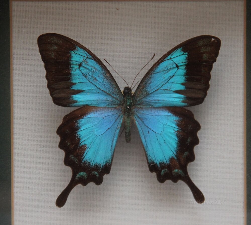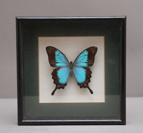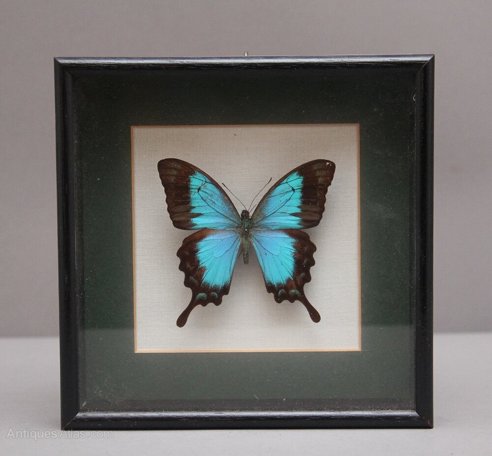 Early 20th Century framed Sea Green Swallowtail butterfly