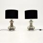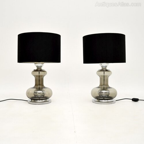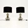 A stylish and very well made pair of vintage French glass and chrome table lamps, dating from around the 1970’s.They are of lovely quality, with a beautiful and curvaceous design. There are lovely chrome features at the bases, top and also inside the glass.