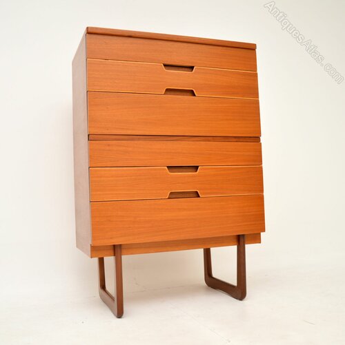 A large and stylish 1960’s vintage walnut chest of drawers by Uniflex, designed by Gunther Hoffstead. This was made in England, it dates from the 1950-60’s.The quality and design is superb, with lovely recessed handles and beautiful U shaped legs. This offers lots of storage space.