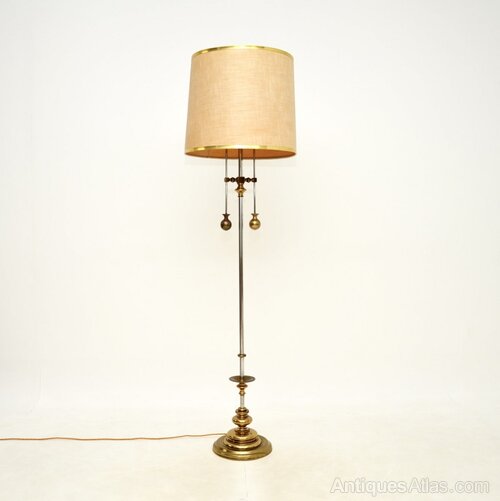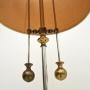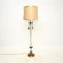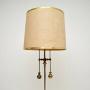 An amazing vintage Italian brass and steel floor lamp, dating from the 1970’s.This has an incredibly stylish and clever design, the stand is beautifully crafted from stainless steel and solid brass. This can take three bulbs, with an up lighting central section, and two downward facing bulbs which are lit with an ingenious spring loaded mechanism. To top it off, there is an amazing original hessian shade with brass trim.