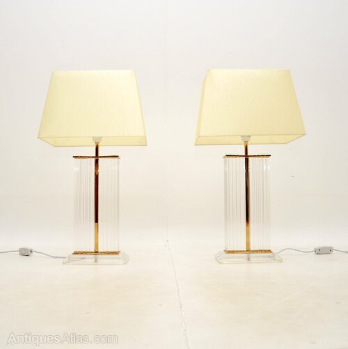 Pair of Vintage French Lucite & Brass Table Lamps