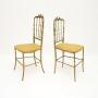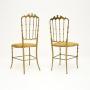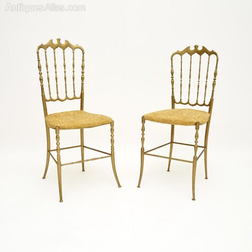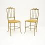 A gorgeous pair of vintage Italian Chiavari dining chairs in solid brass. They were made in Italy and date from around the 1950’s.The quality is outstanding, they look beautiful from all angles and are surprisingly comfortable. The solid brass frames are very heavy, sturdy and strong. They are actually a matched pair, with some very slight differences to the design on the base, and the height of the backrest differs by about one inch.