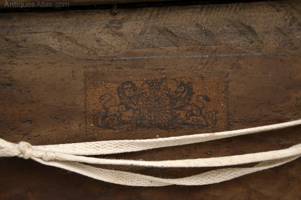 We have had this re-polished, the condition is excellent for its age. As well as being carved with a date and location on the back, there is also an original label with a coat of arms.