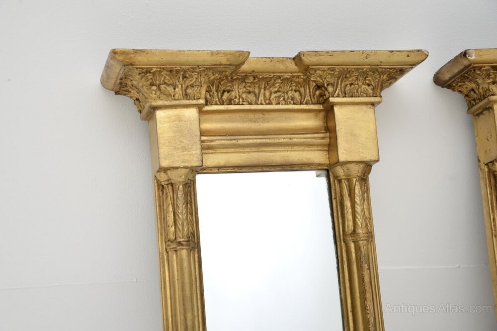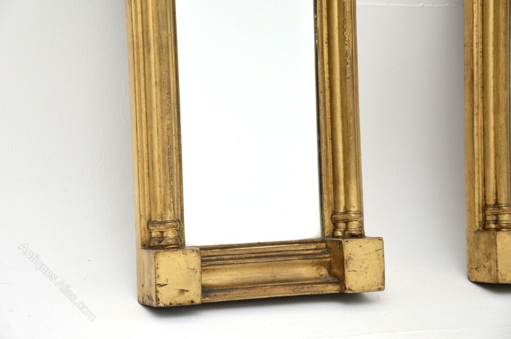 A stunning pair of antique Regency period gilt wood pier mirrors. They were made in England, they date from around the 1810-1830 period.The quality is fantastic, they are beautifully made and are a lovely, petite size. The gilt wood finish has a gorgeous patina and colour tone.