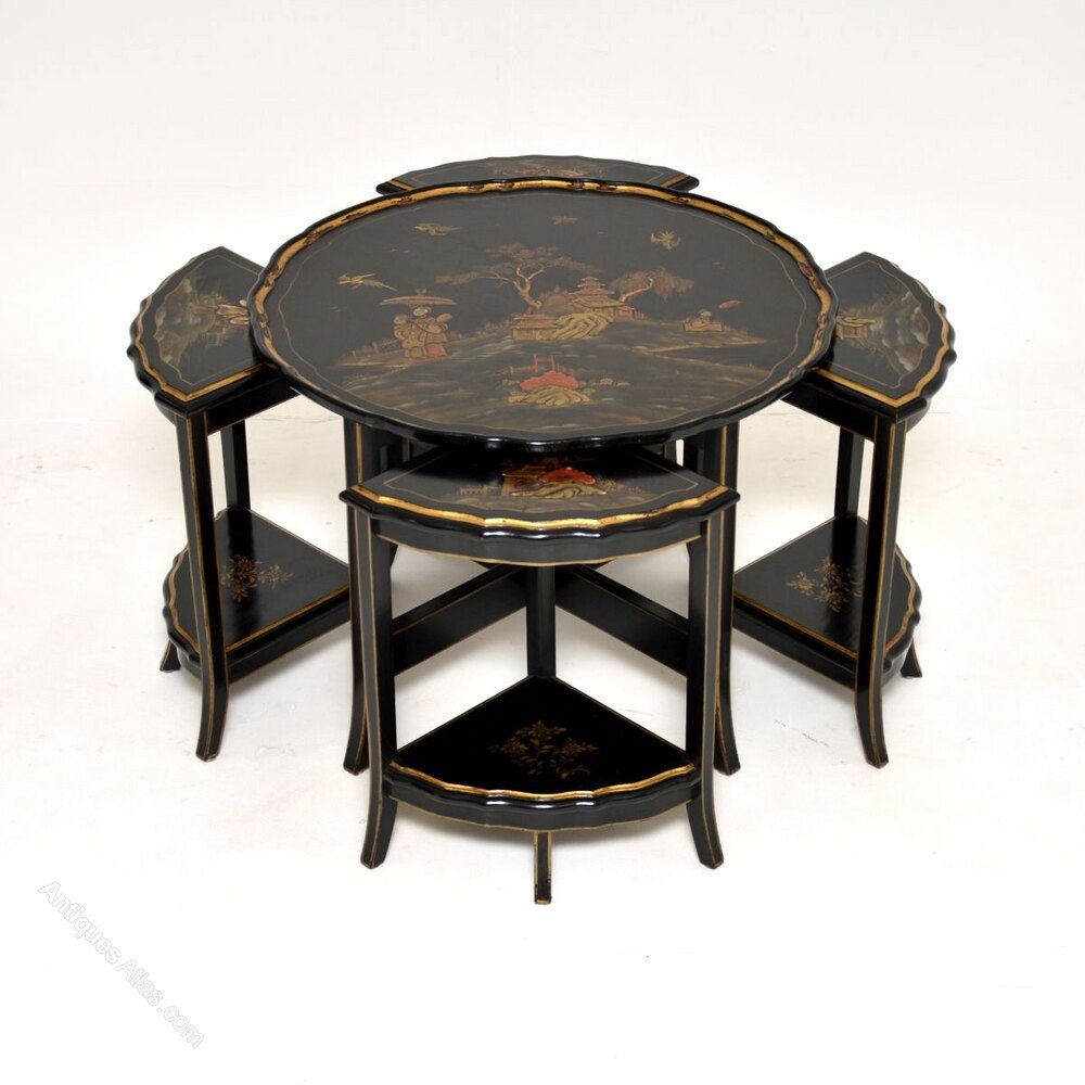 Antique Lacquered Chinoiserie Nesting Coffee Table