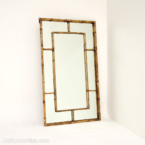 A lovely vintage Italian gilt metal mirror, dating from the 1970’s.It is of great quality and it is an impressive size. It is beautifully made from gilt metal with a faux bamboo design. There are lovely details around the edges, the back of the mirror is dated August 25th 1971.