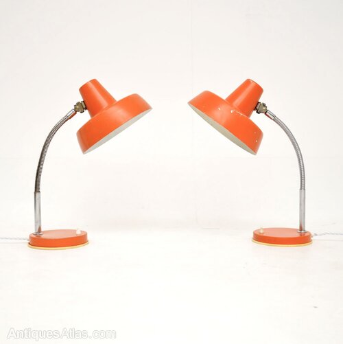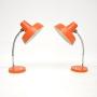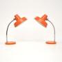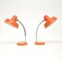 A superb pair of vintage desk / table lamps, beautifully finished in orange. They were made in Germany, and they date from the 1960’s.The quality is fantastic, these are very useful and could be used as desk lamps, or even as bedside lamps.