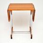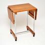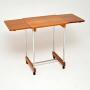 A lovely and very unusual vintage oak and chrome drop leaf side table. This was made in England, it dates from the 1950-60’s.It is of lovely quality, it is beautifully designed and is a very useful size.