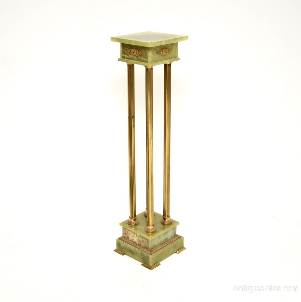 Antique French Onyx and Brass Plant Stand Column