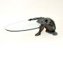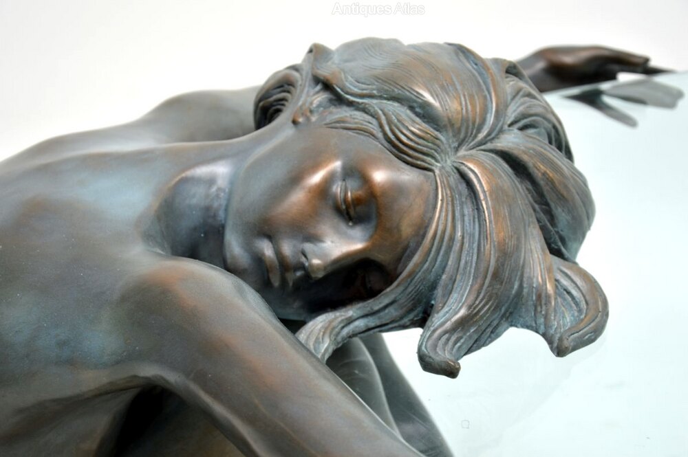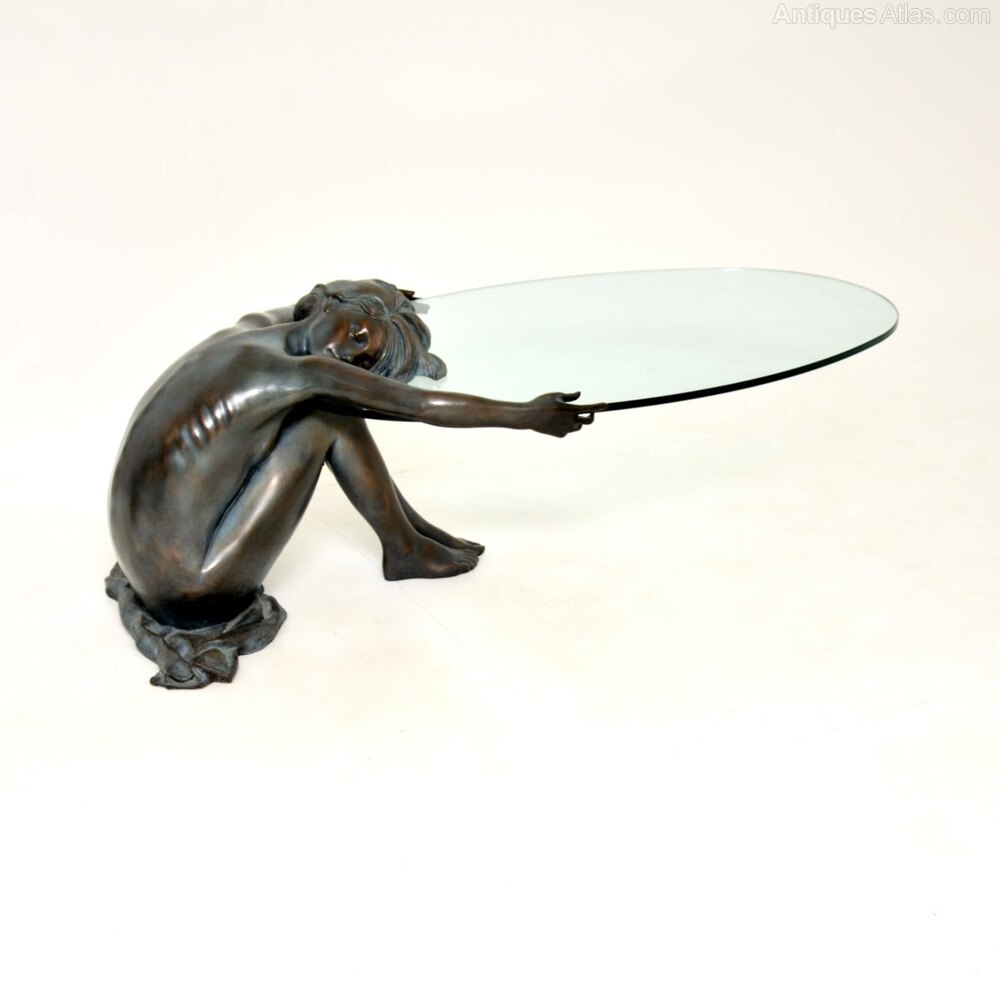 An amazing vintage sculptural bronze coffee table in the form of a nude woman. This was made in France, it dates from around the 1970’s.It is beautifully cast and is of amazing quality, there is an artists signature on the base. The woman is nearly life size, and supports the thick toughened glass oval top with her outstretched arms. It is truly a functional work of art.