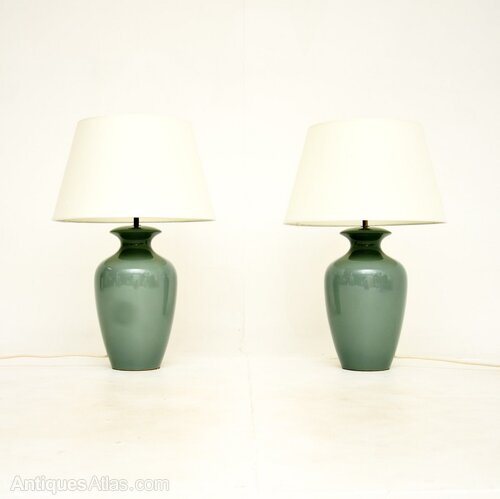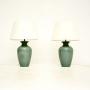 A gorgeous pair of vintage ceramic table lamps, likely made in Italy and dating from the 1970’s.They are large and impressive, with a beautiful urn shaped design. The quality is superb, the colour tone of the ceramic glaze is a gorgeous powder teal colour.