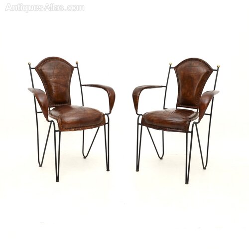 A stunning pair of vintage French iron and leather armchairs, dating from around the 1960’s.This model is often attributed to Jacques Adnet, they are of superb quality and is extremely stylish.