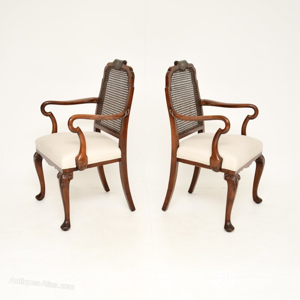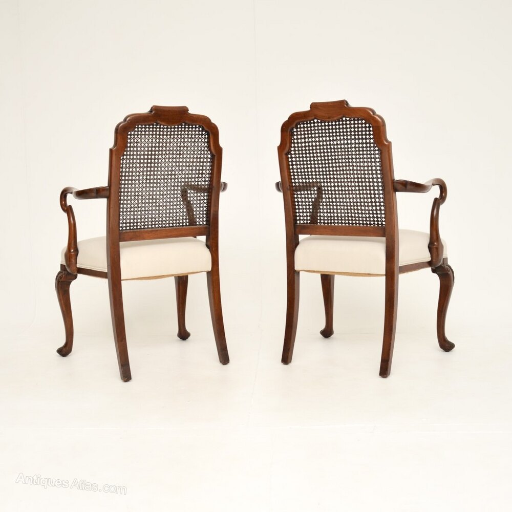 Pair of Antique Edwardian Walnut Cane Armchairs