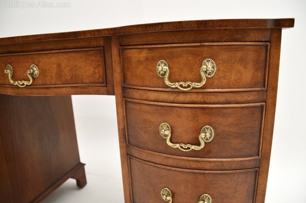 Antique Burr Walnut Leather Top Pedestal Desk