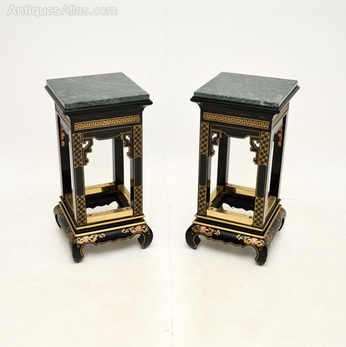 Pair of Antique Chinoiserie Marble Top Side Tables