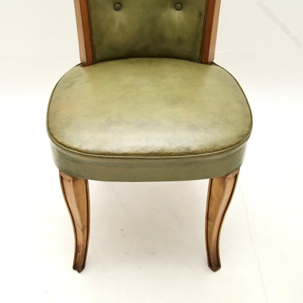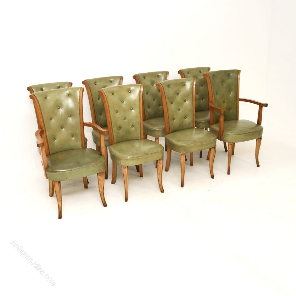 Set of 8 Art Deco Leather & Walnut Dining Chairs