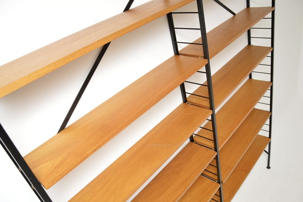 This unit consists of three ebonised metal rails and twelve teak shelves with supporting rails. It is a very useful size, being the lightly slimmer version from front to back, so does not impose too much into the room, yet offers lots of storage space.