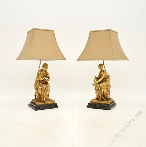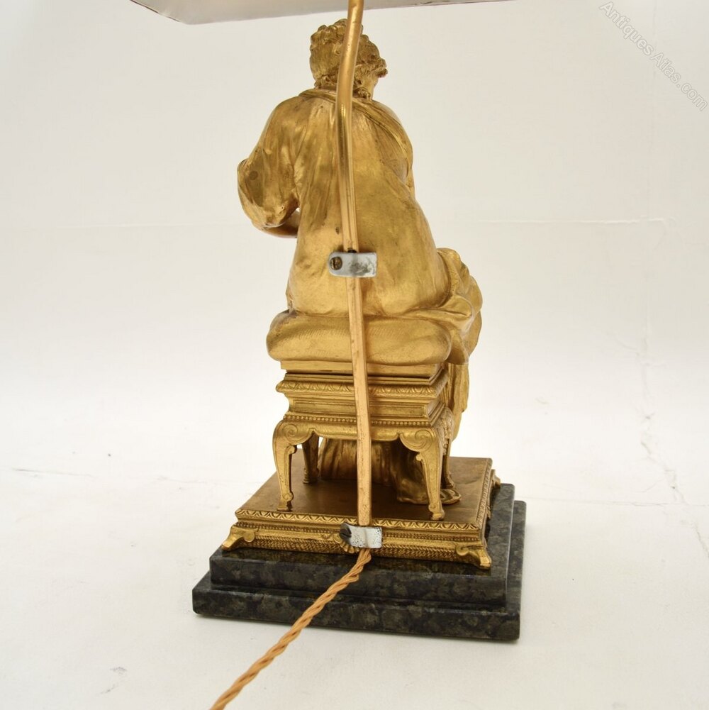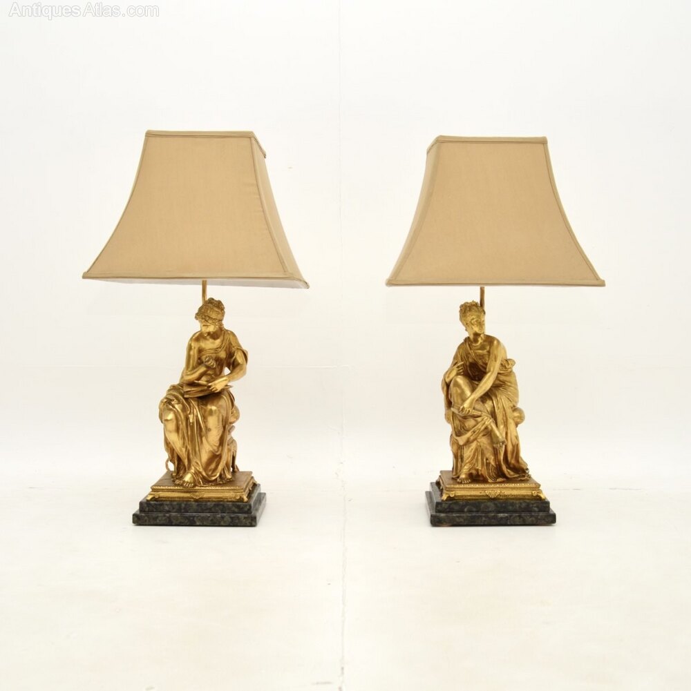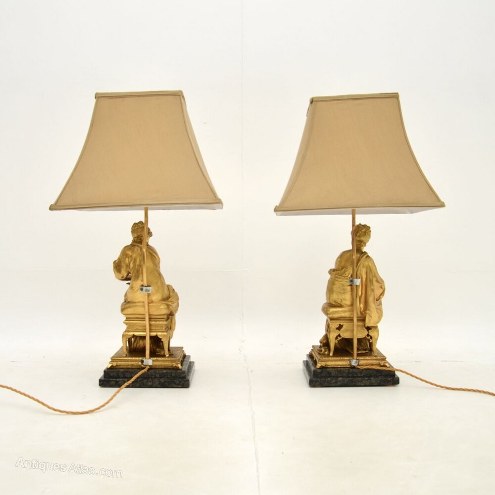 Pair of Antique Victorian Gilt Bronze Table Lamps