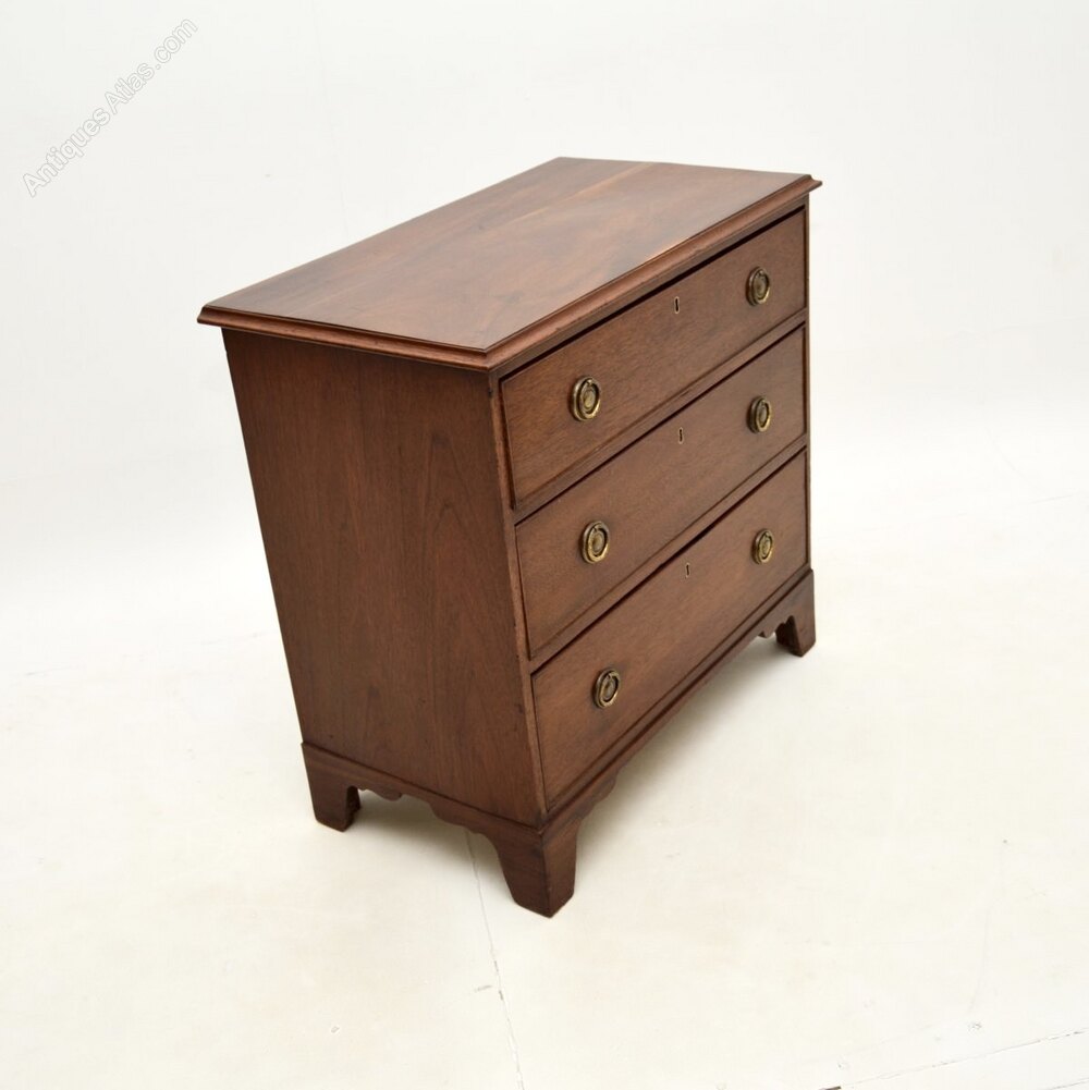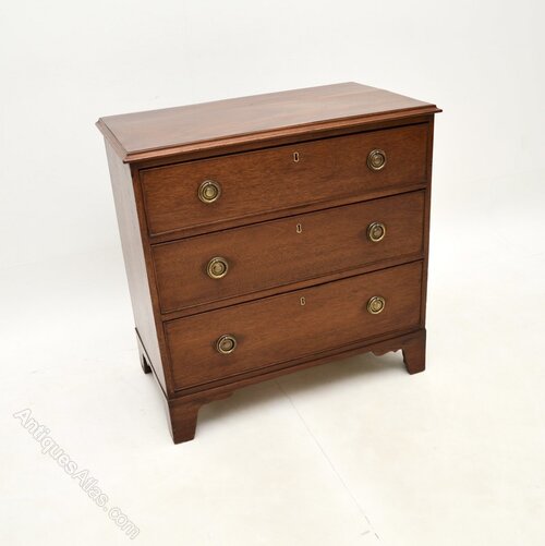 A wonderful antique Georgian period mahogany chest of drawers. This was made in England, it dates from around the 1790-1810 period.It is of outstanding quality, it is very well built and it is a useful size, with lots of storage space inside the generous drawers. There are lovely brass ring pull handles and fine, hand cut dovetailed joints, this sits on beautifully shaped bracket feet.