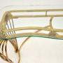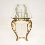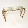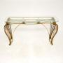 An absolutely gorgeous vintage Italian brass and glass console table. This was made in Italy, it dates from around the 1960’s.The quality is exceptional, this is extremely well made and very heavy for its size. It is beautifully finished on all sides, so could be used as a free standing table. The toughened clear glass top has a serpentine edge and can be lifted off the base.
