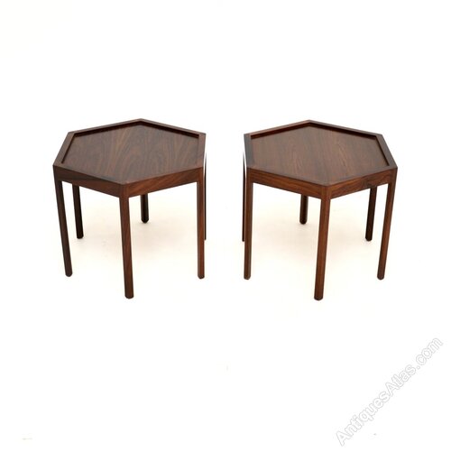 A very stylish and rare pair of Danish vintage rosewood side tables by Hans C Andersen for Artex. They were made in Denmark, they date from the 1960’s.The quality is outstanding, they are beautifully constructed and are a lovely size. The rosewood has gorgeous colour tones and grain patterns, they have the makers mark stamped beneath the edges.