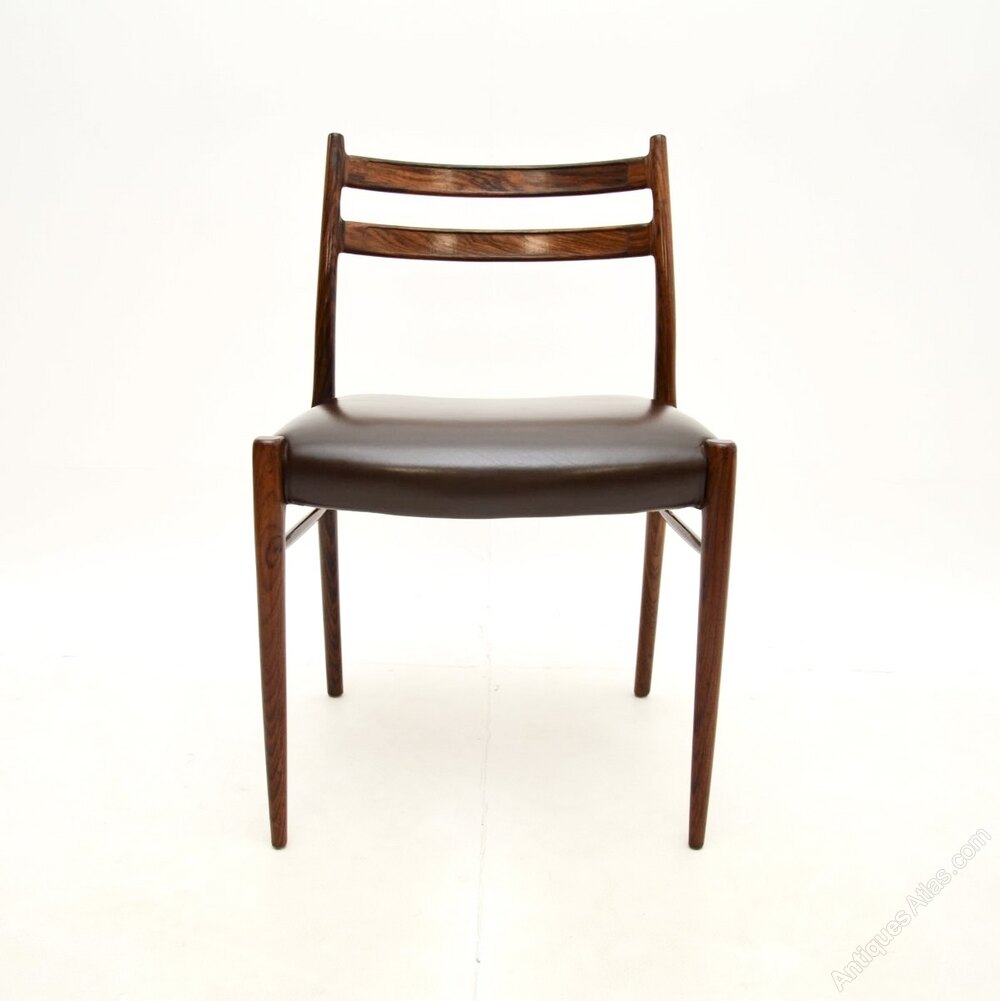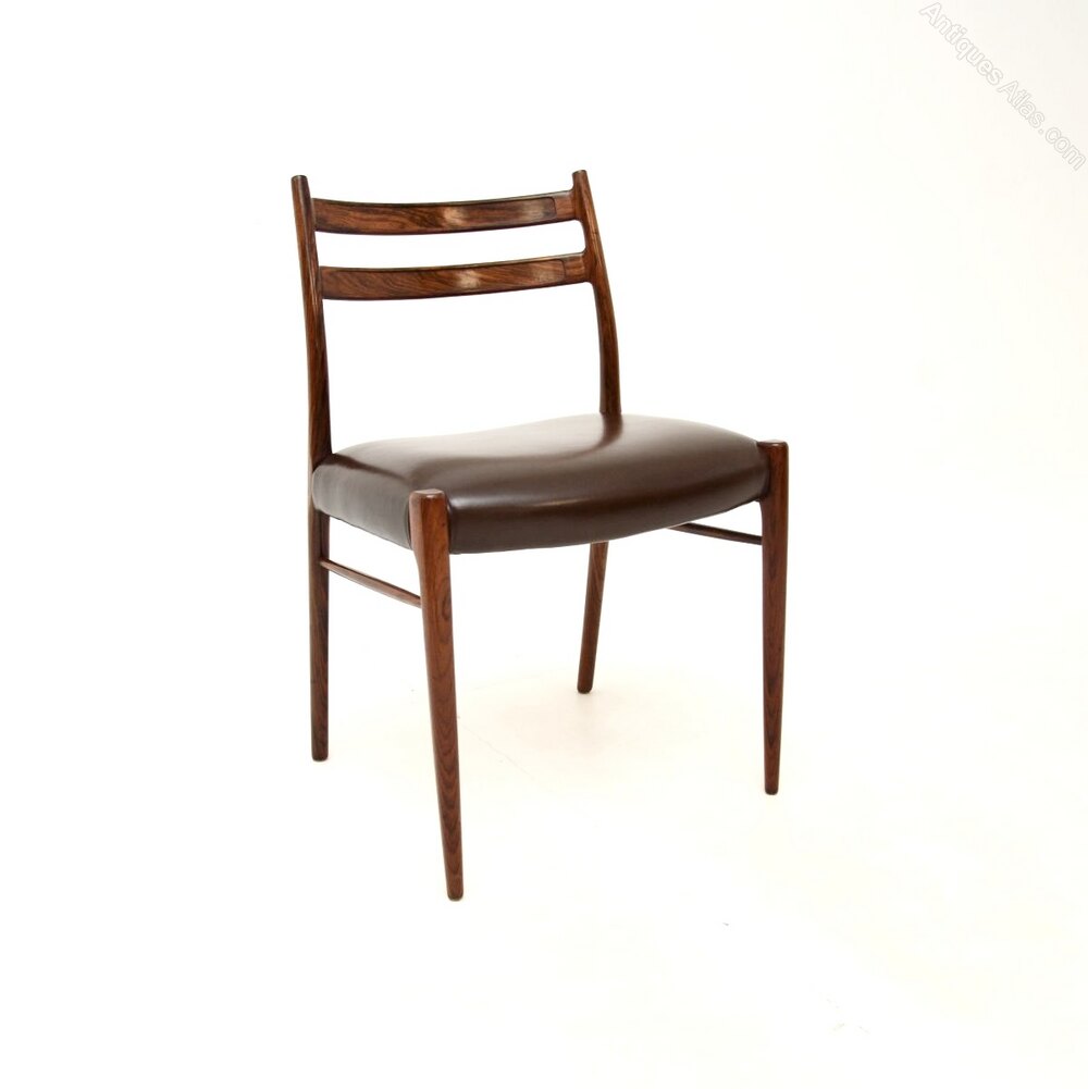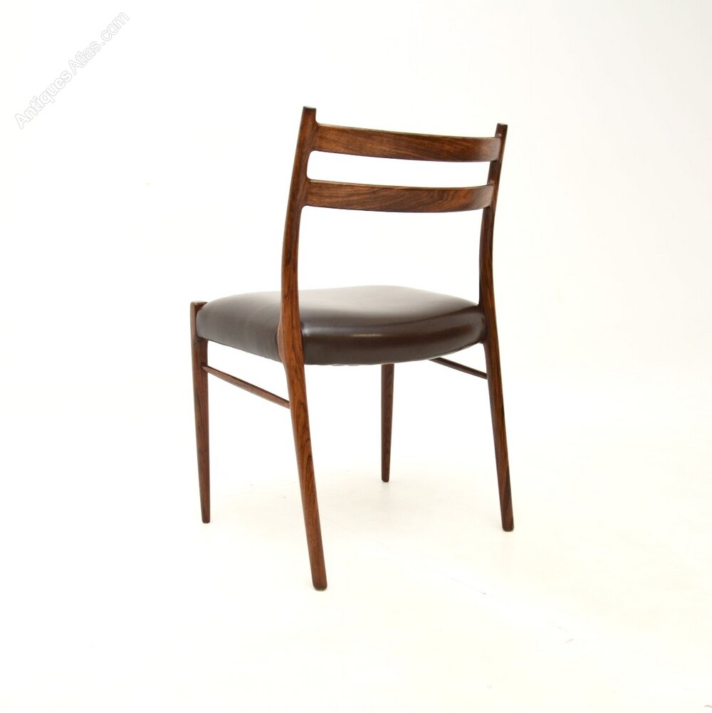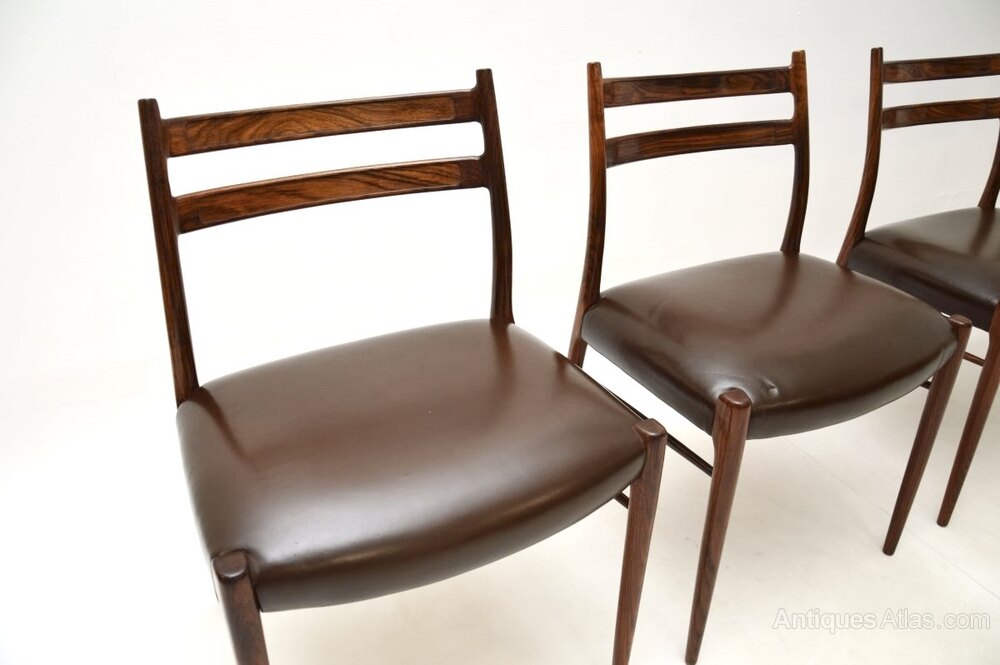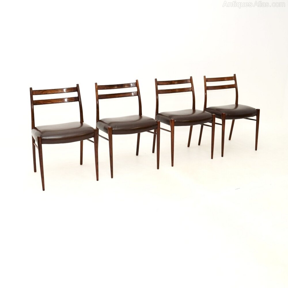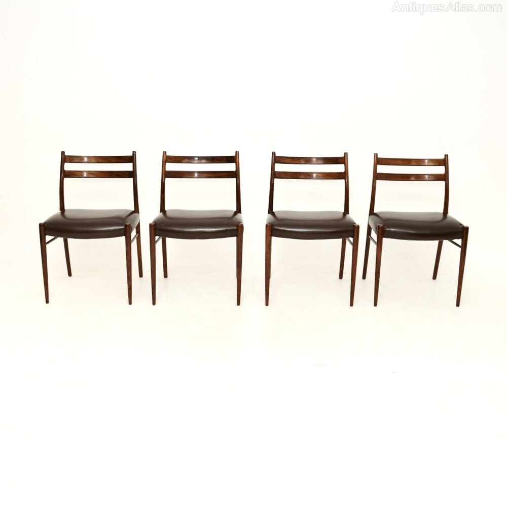 A stylish, rare and extremely well made set of four Danish rosewood and leather dining chairs by Arne Wahl Iversen. They are the model GS70 chairs, made by Glyngore Stolefabrik in the 1960’s.The quality is outstanding, they have a beautiful design and they are comfortable, with well padded leather seats.
