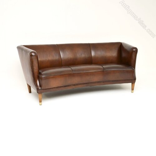 An absolutely stunning and extremely well made vintage Danish cabinetmaker leather sofa. This was recently imported from Denmark, it dates from the 1950’s.The quality is outstanding, this is a very useful size and is extremely comfortable. The frame is well sprung and well proportioned, it sits on solid beech legs with brass feet caps on the front legs.