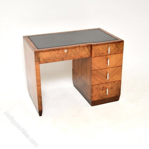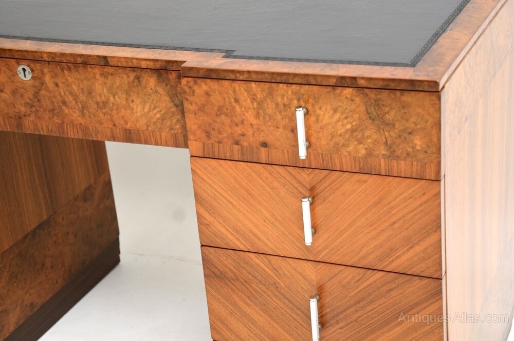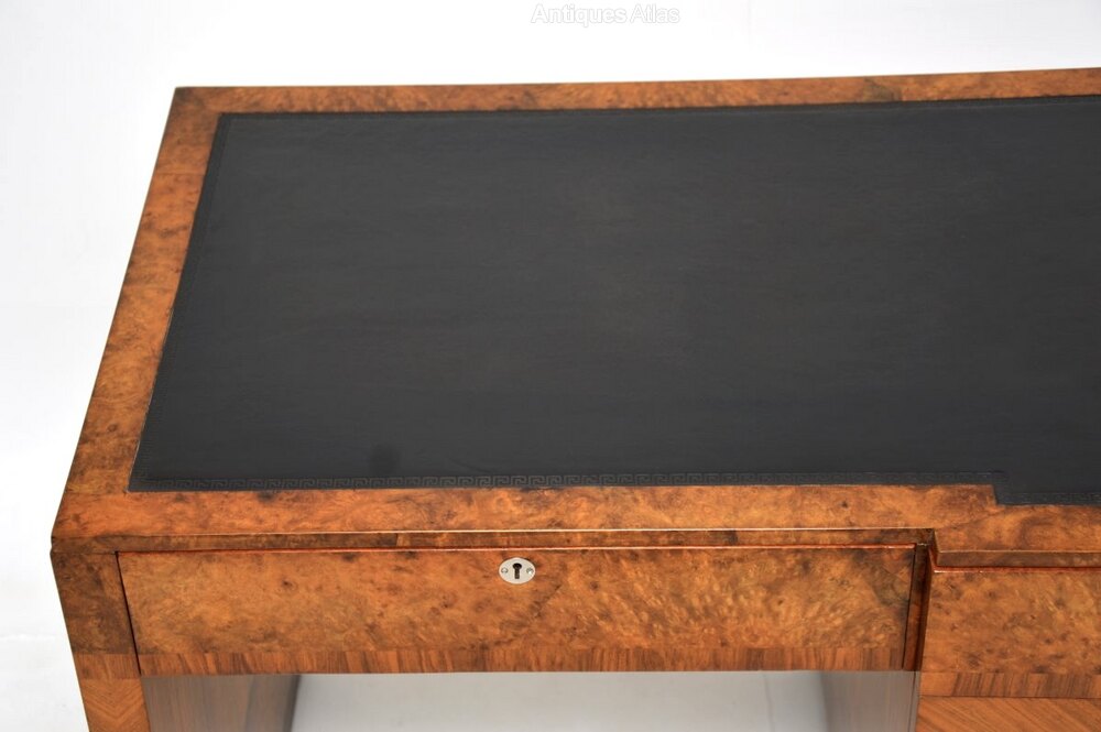 Art Deco Burr Walnut Leather Top Desk