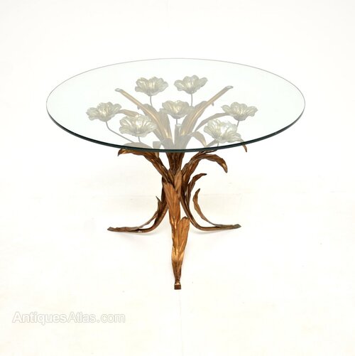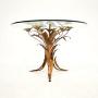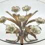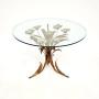 A stunning vintage gilt metal coffee table by Hans Kogl, made in Germany and dating from the 1960’s.It is beautifully designed and is of wonderful quality. The frame has gorgeous floral designs and is finished mostly in gold, with silvered flowers. It supports a clear circular toughened glass top.