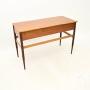 A smart and very stylish vintage French satin wood desk / console table, dating from the 1950’s.This is beautifully designed and it is of wonderful quality. It is a great size to be used as a desk, console table or dressing table. The satin wood has a gorgeous colour tone, this has three drawers with brass handles and it stands on fluted legs. The back is also nicely finished, so this can be used as a free standing item.