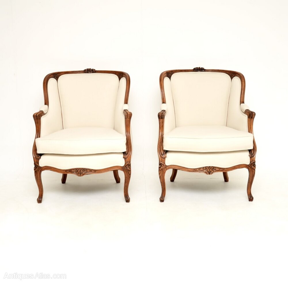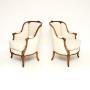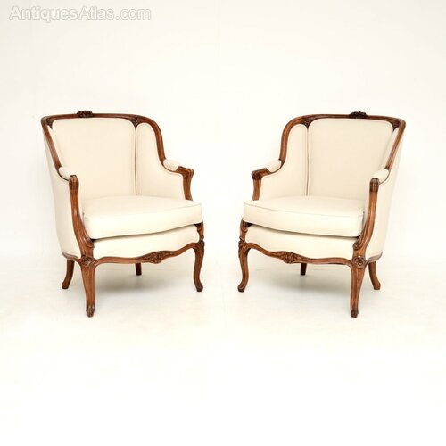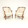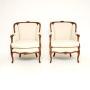A stunning pair of antique French walnut armchairs. They were made in France and date from around the 1920’s.The quality is outstanding, the solid walnut frames have a gorgeous colour tone, beautifully crisp carving and a wonderful shape. They are nicely designed, very comfortable and look amazing from all angles.