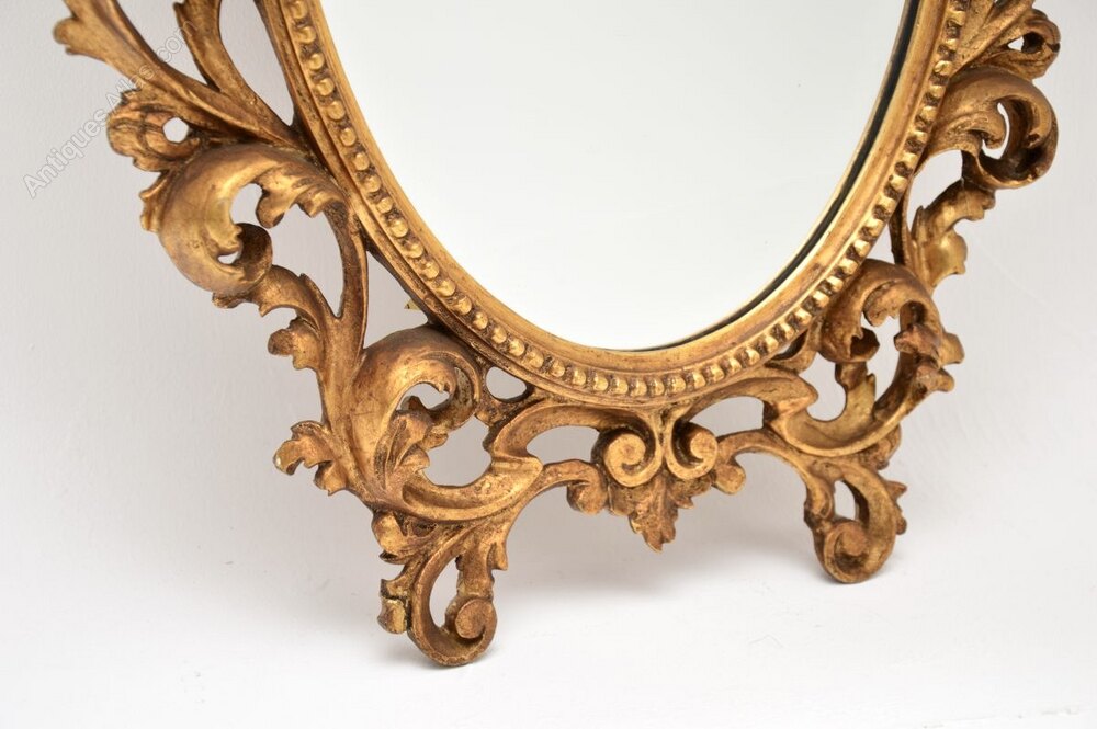 A fabulous antique Italian Rococo style gilt wood mirror. This dates from around the 1930’s period and it is of extremely fine quality.The carving on the gilt wood frame is deep and intricate, it is most impressive. The gilt wood is in great condition and has a beautiful patina, with some just some minor historical surface wear.