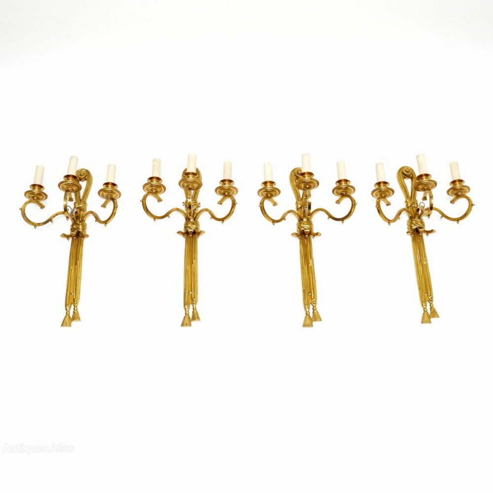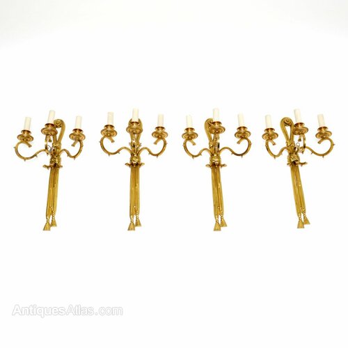 Set of Four Antique Brass Wall Sconce Lamps