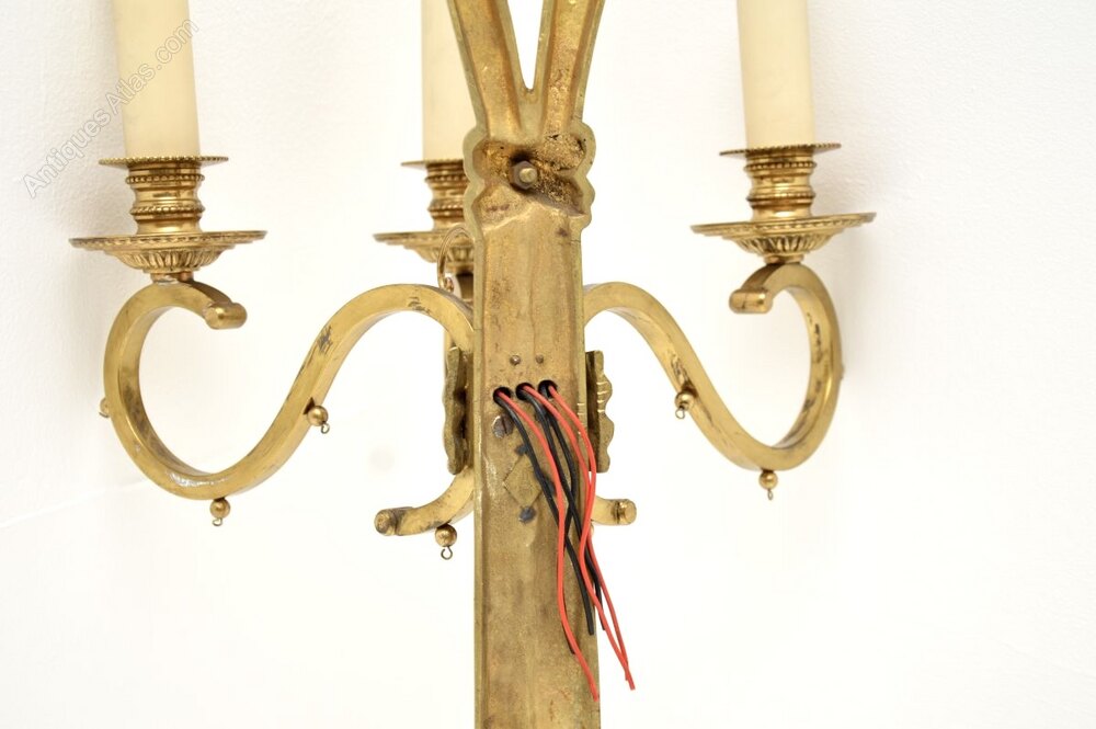 A stunning set of four antique brass wall sconce lamps. They were made in Belgium, they date from around the 1950’s.The quality is excellent, they have very fine details and are beautifully designed as candelabra in the Adam style.