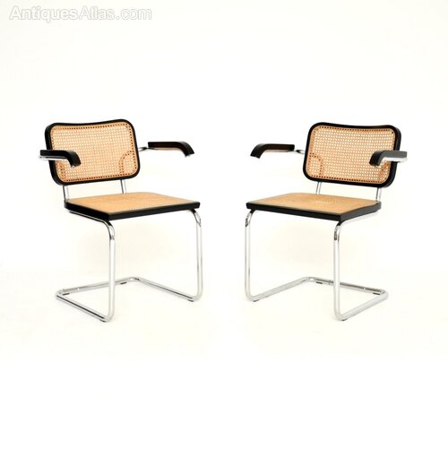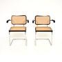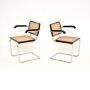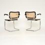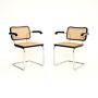 A stylish and iconic vintage pair of vintage Italian Cesca dining chairs, originally designed by Marcel Breuer in the 1920’s. These were made in Italy, they date from around the 1970’s.They are of outstanding quality, and are very comfortable, the cantilevered tubular steel frames gives them a nice gentle spring. The backs and seats are caned, the seats are stamped ‘made in Italy’.