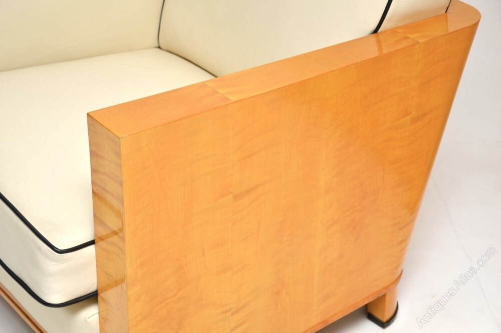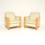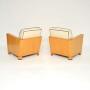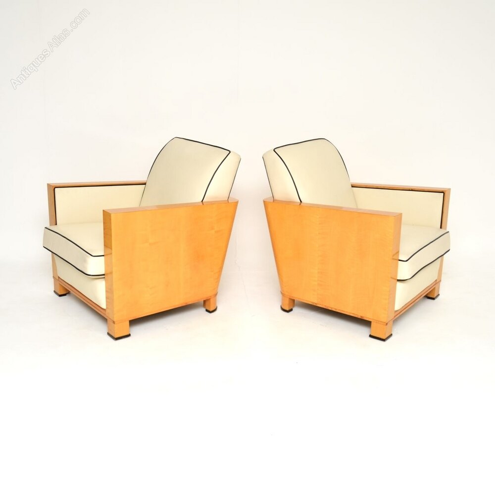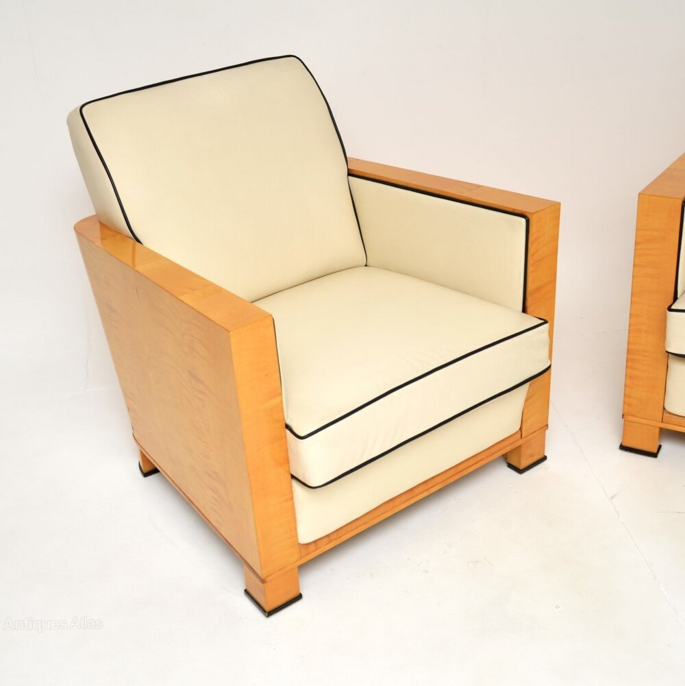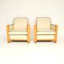 A very stylish and extremely well made pair of Swedish Art Deco armchairs in leather and satin birch. They were recently imported from Sweden, they date from the 1930’s,The quality is outstanding, they are well sprung and very comfortable. The satin birch frames wrap around the entire sides and backs, they are very sturdy and robust chairs. The satin birch has an exquisite colour tone and stunning grain patterns.