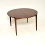 An absolutely stunning Danish vintage rosewood dining table by Rosengren Hansen, dating from the 1960’s.It is of outstanding quality, with an elegant and stylish design. It has thin edges and beautiful joinery, especially on the edge of the table top and where the legs meet the top.