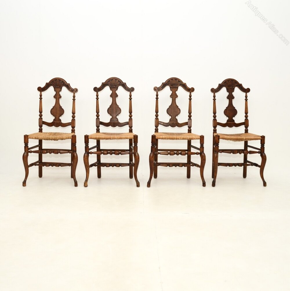 Set of Four Antique French Walnut Dining Chairs