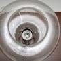 A smart and very well made vintage French glass and chrome table lamp, dating from the 1970’s.This is of lovely quality and has a beautiful design. The glass is blown with many light air bubbles trapped inside, to give this gorgeous textured appearance. Inside is a chrome bulb holder which is attached by three chrome capped bolts.