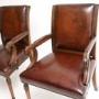 We have had the mahogany re-polished, the leather has been hand coloured and revived by our leather restorer to bring out the gorgeous patina. They are in excellent condition for their age.