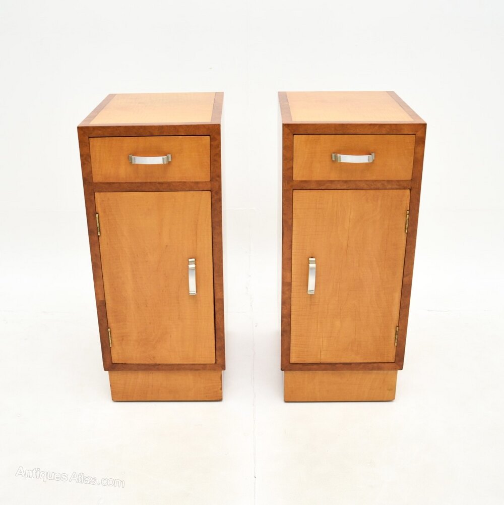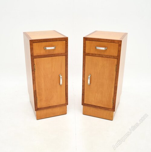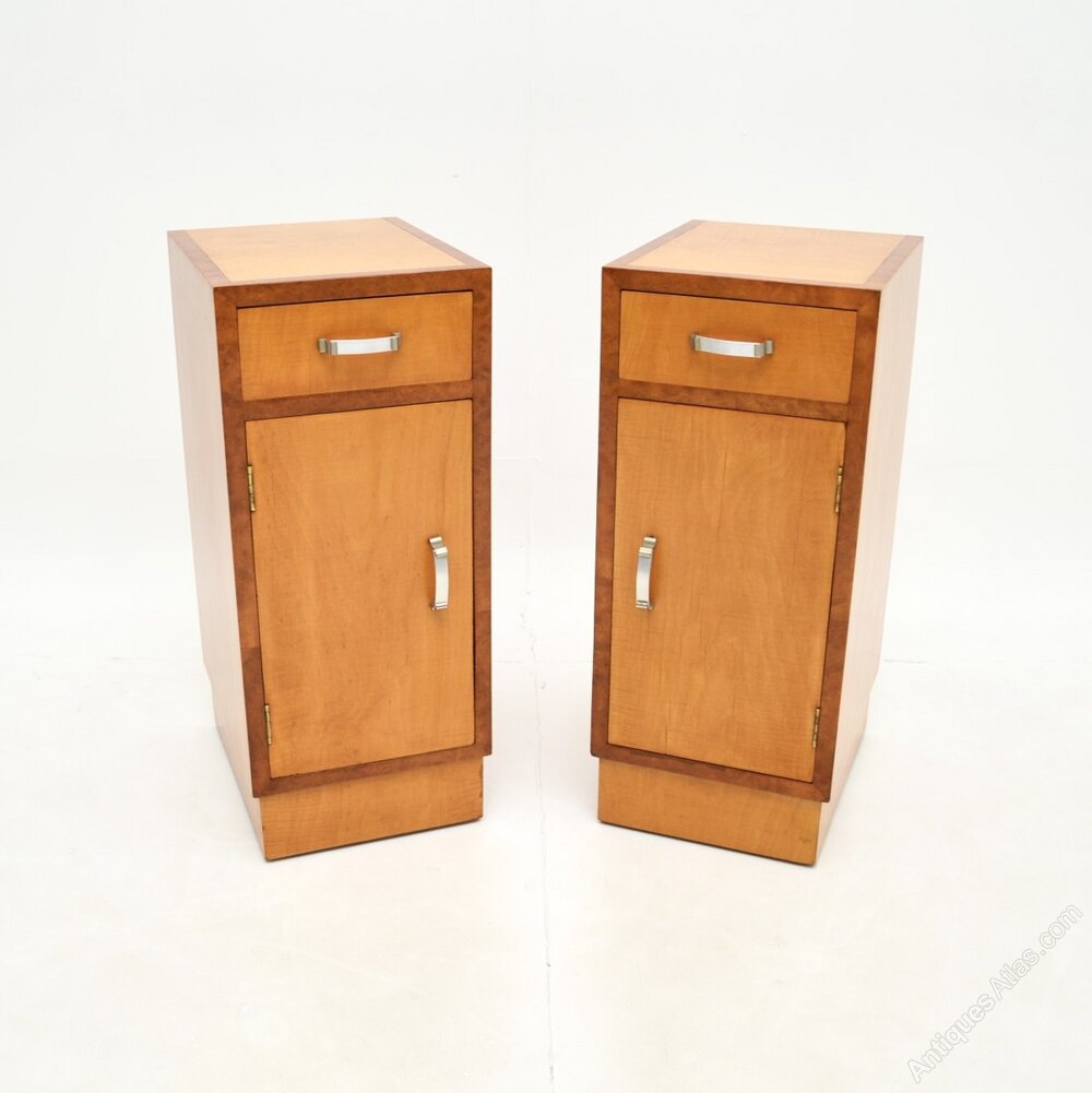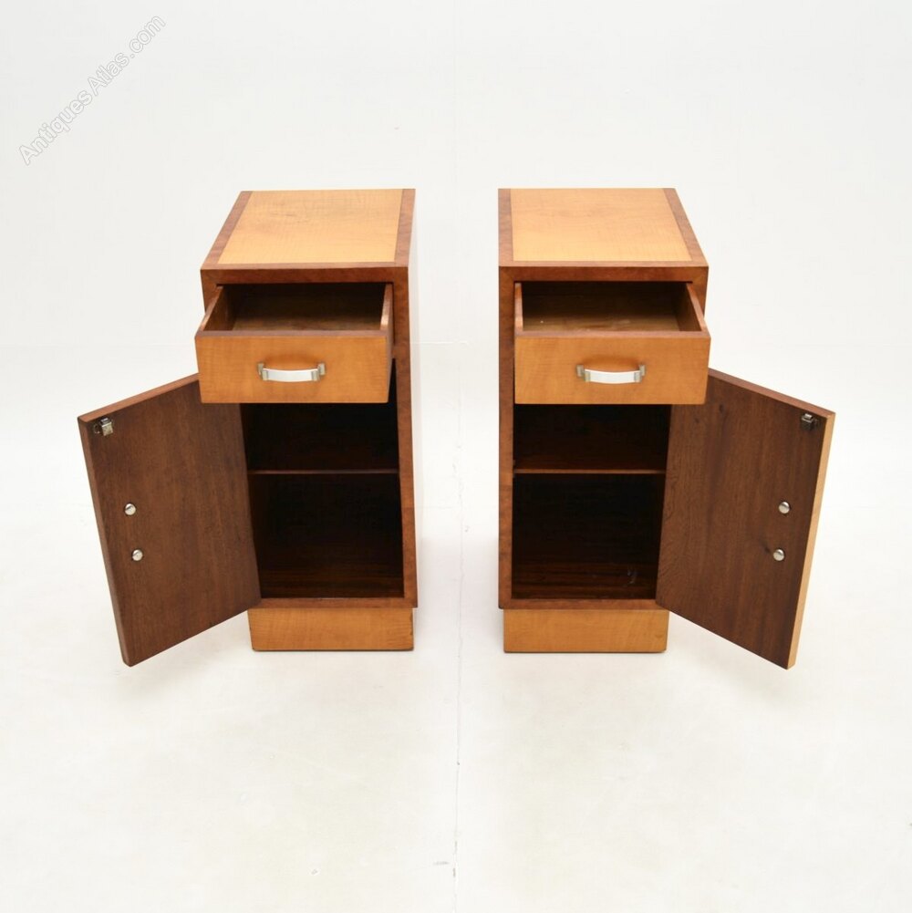 Pair of Art Deco Satinwood and Walnut Bedsides