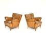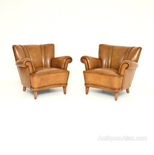 A superb pair of vintage Swedish leather club armchairs. They were recently imported from Sweden, they date from around the 1940’s.The quality is outstanding, the curvaceous frames are generous, well sprung and they are extremely comfortable. They stand on chunky tapered beech legs, and look amazing from all angles.