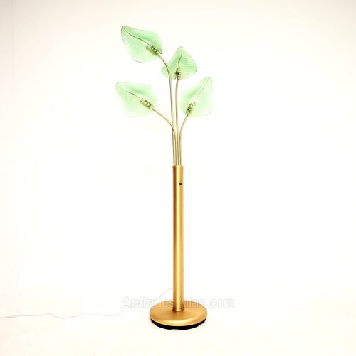 A stunning vintage brass and glass tree form floor lamp, made in France and dating from around the 1970’s.This is of wonderful quality and has a beautiful design. It is large and impressive, the brushed brass frame has four arms that support gorgeous green glass shades in the form of large leaves. The arms can swivel slightly to adjust the angle of light.
