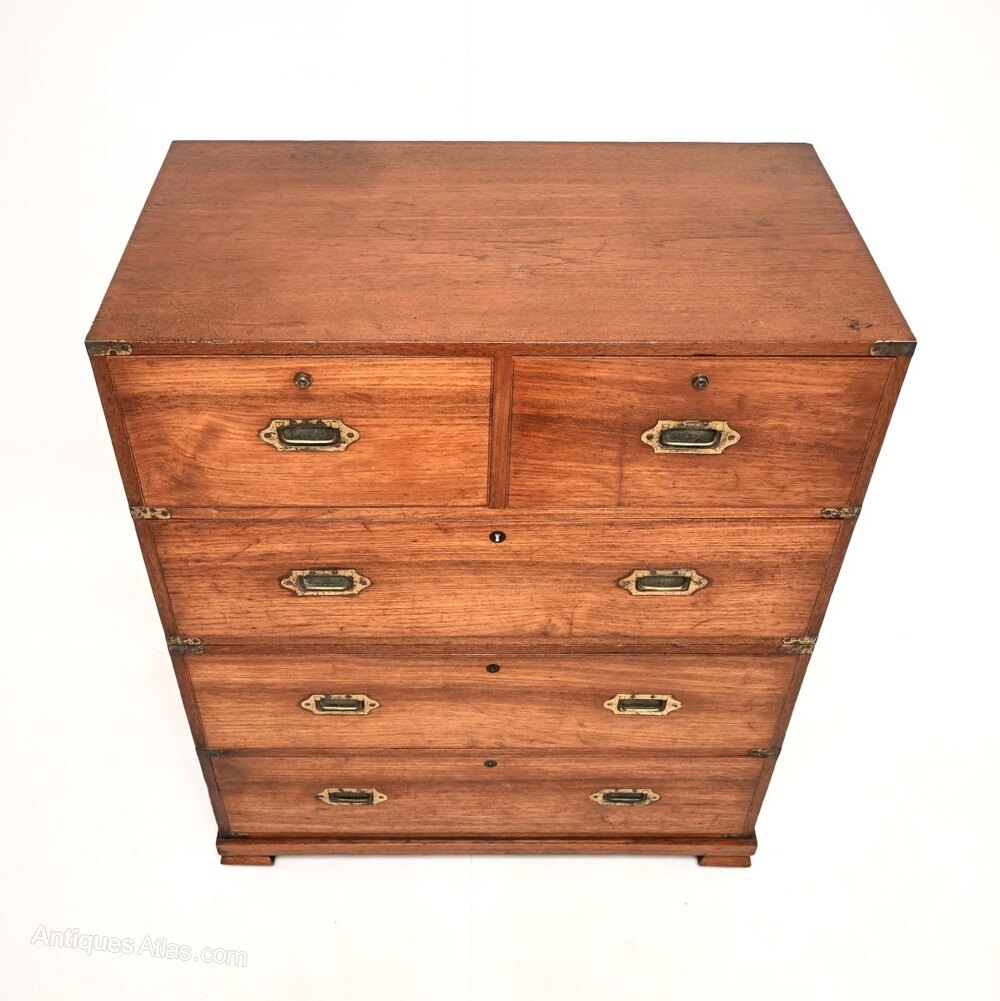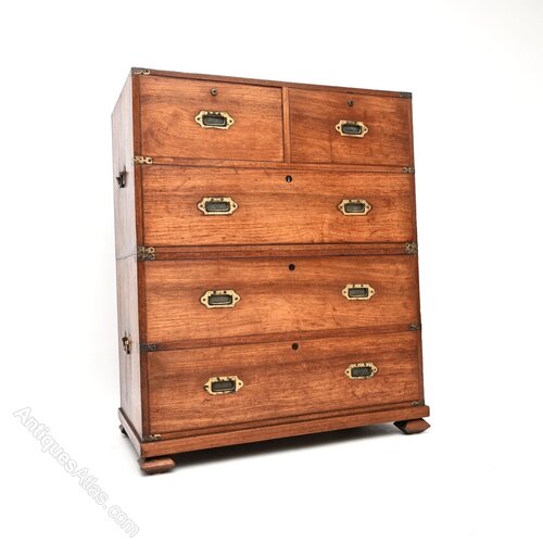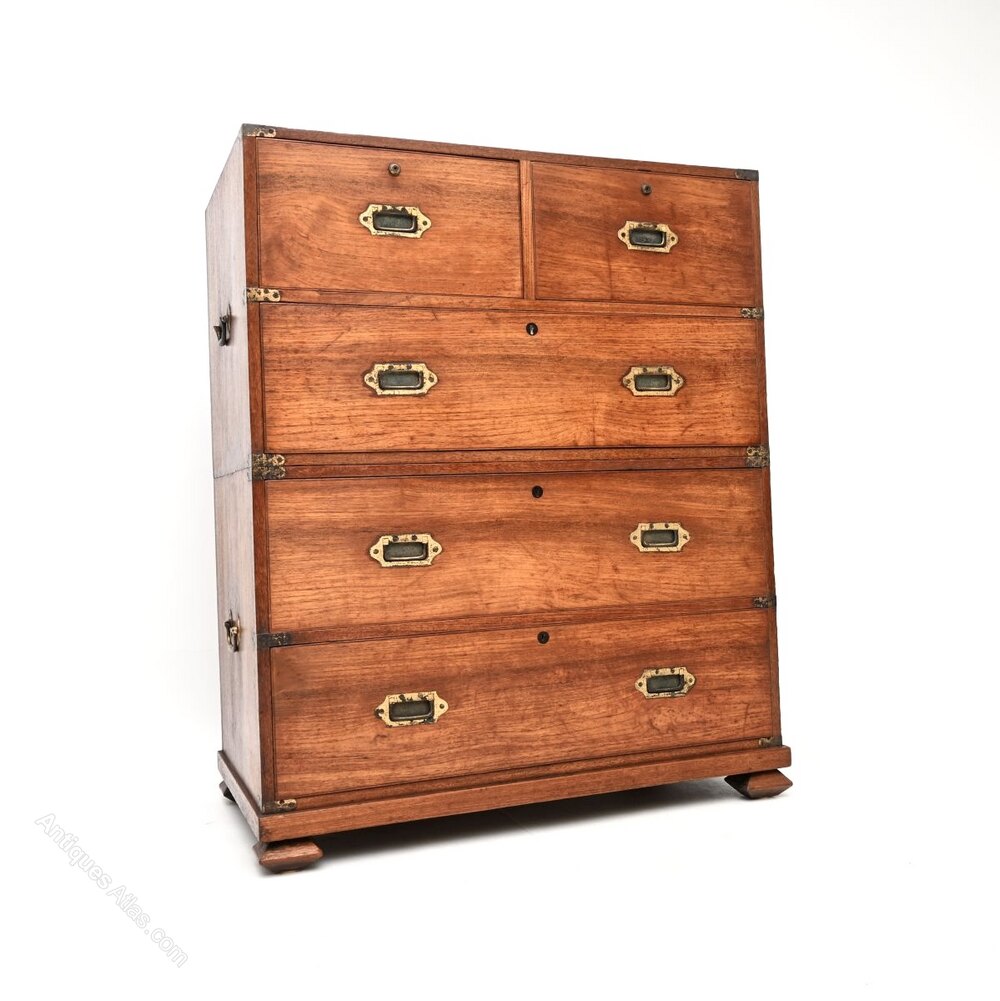 Antique Teak Military Campaign Chest of Drawers