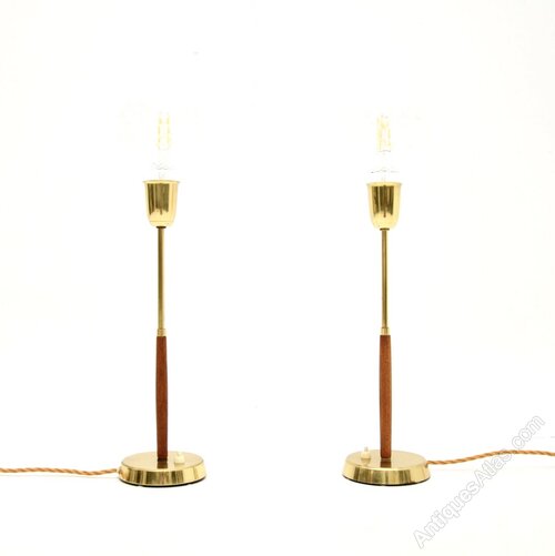 A smart and stylish pair of Swedish vintage teak and brass table lamps. They were recently imported from Sweden, they date from around the 1960’s.The quality is superb, they are a beautifully designed and are a lovely size. The solid teak central columns stand on brass bases and have a brass stem above them. They are designed to hold a large decorative bulb, the ones in the images are included with the lamps.