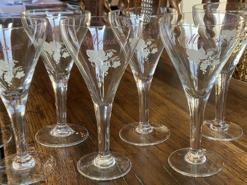 Super Set of Eight Original Moussec Acid Etched Wine GlassesAll perfect showing slightest of wear