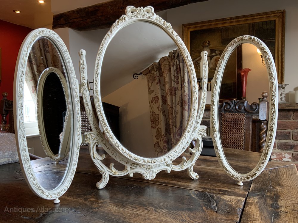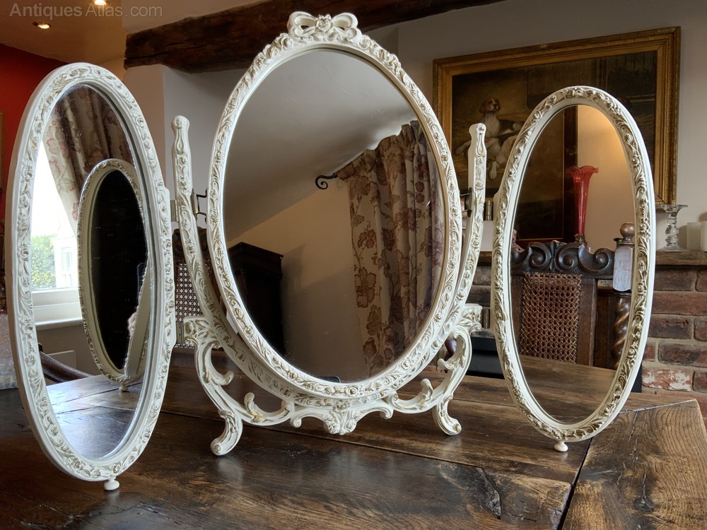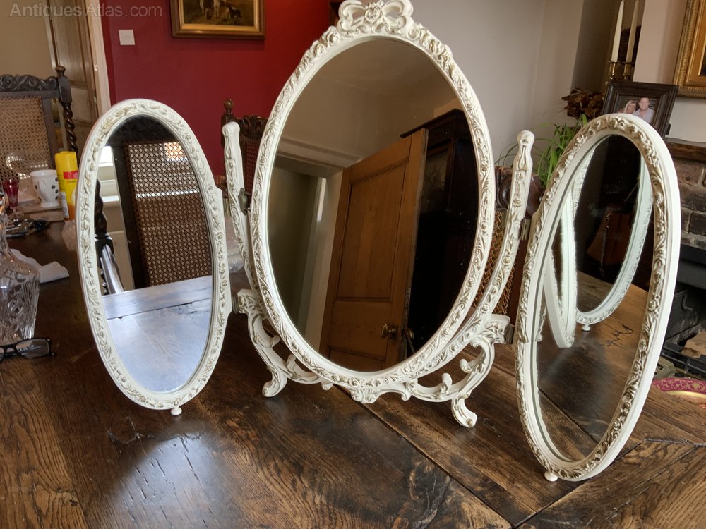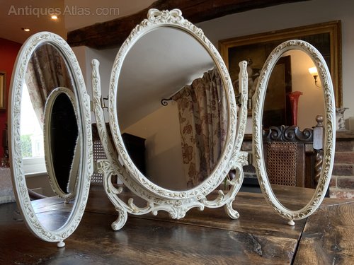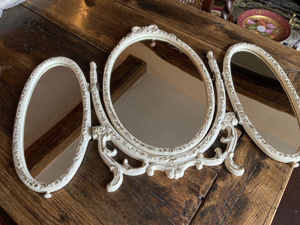 Pretty Vintage Gilt and White Rococo Triptych Folding MirrorLovely creamy white gilted edge to all the panels